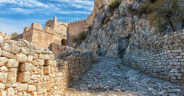 Na het Kanaal van Korinthe zien we de Akrokorinth (Ακροκόρινθος) opdoemen. Deze 575 meter hoge rotsheuvel is vanuit de wijde omgeving goed te zien en omgekeerd geldt natuurlijk hetzelfde. Vandaar dat het een strategische plek was om een fort te bouwen. Elke bezetter van de streek heeft op de heuvel zijn sporen duidelijk nagelaten: de Grieken, de Byzantijnen, de Franken, de Kruisvaarders, de Venetianen en de Ottomanen. Door een onderaardse waterbron, de Peirenebron, bleek de Akrokorinth een onneembare vesting voor wie hem belegerde: De watertoevoer stopt hier nooit. Als je de Akrokorinth bezoekt, zie je duidelijk de verschillende tijdperken en hun resten. Het laagste stuk van het fort bestaat uit Ottomaanse resten. Daarna tref je een Frankisch complex aan, waarna je uit komt bij het hoogste deel van de berg, waar de Byzantijnen de antieke resten hebben proberen te verwerken in hun complex. Van de majestueuze stad die hier ooit lag, is weinig meer over, al zijn er nog resten zichtbaar van badhuizen, woonhuizen en moskeeën. Op de top vinden we nog fundamenten van een Afroditetempel die hier ooit gestaan heeft. De klim naar de top is fors, maar biedt wel een prachtig uitzicht over Isthmos en de omgeving.